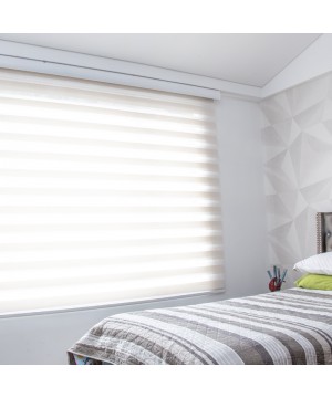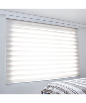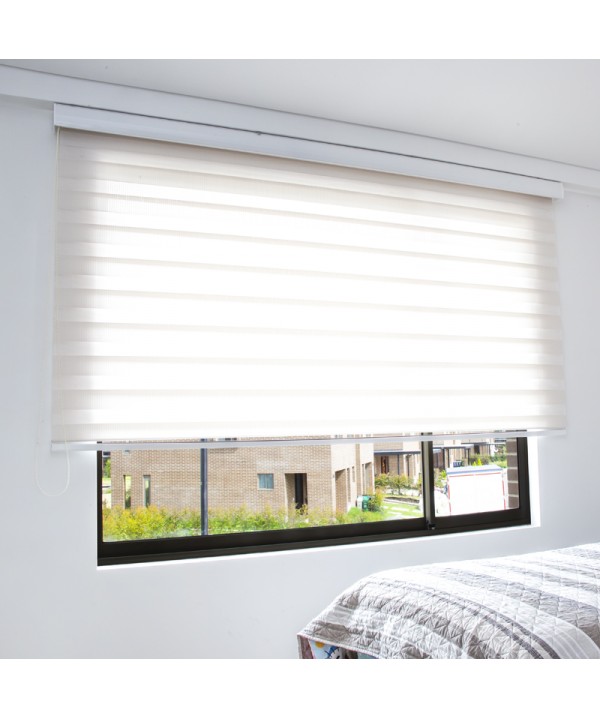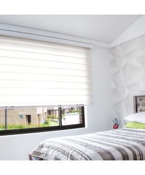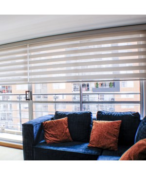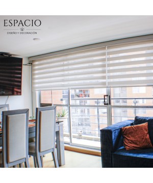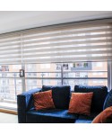 Cortina moderna que gracias al fino diseño de su tela, que intercala horizontalmente franjas sólidas y translúcidas, ajustables a los niveles de luz y privacidad que deseas obtener, perfecta para tu habitación, sala o comedor.