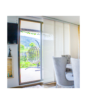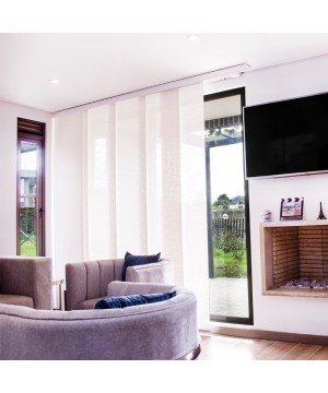 Son cortinas simples y elegantes para cubrir y adornar grandes ventanas que van de piso a techo, esta compuesta por una serie de paneles tensos, todos del mismo tamaño y unidos a un riel.